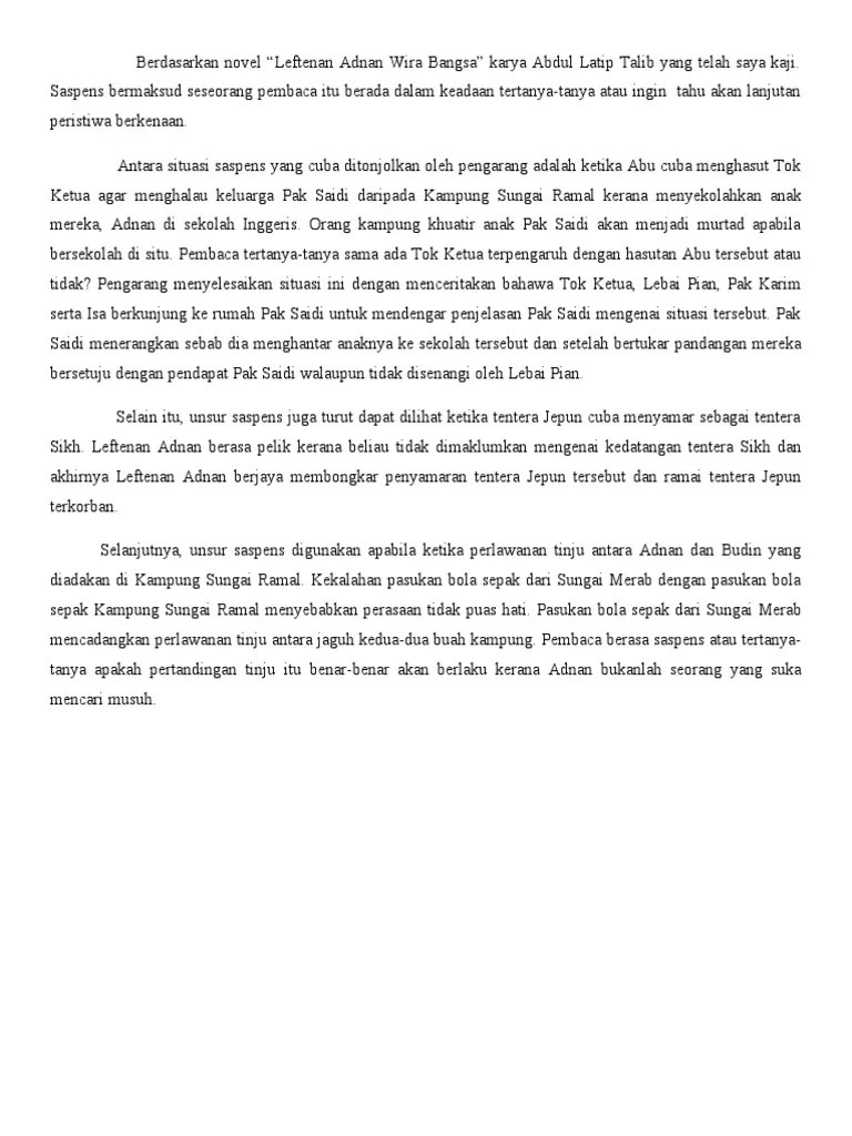 Oct 31, 2019 · novel yang saya kaji ialah leftenan adnan wira bangsa karya abdul latip talib.